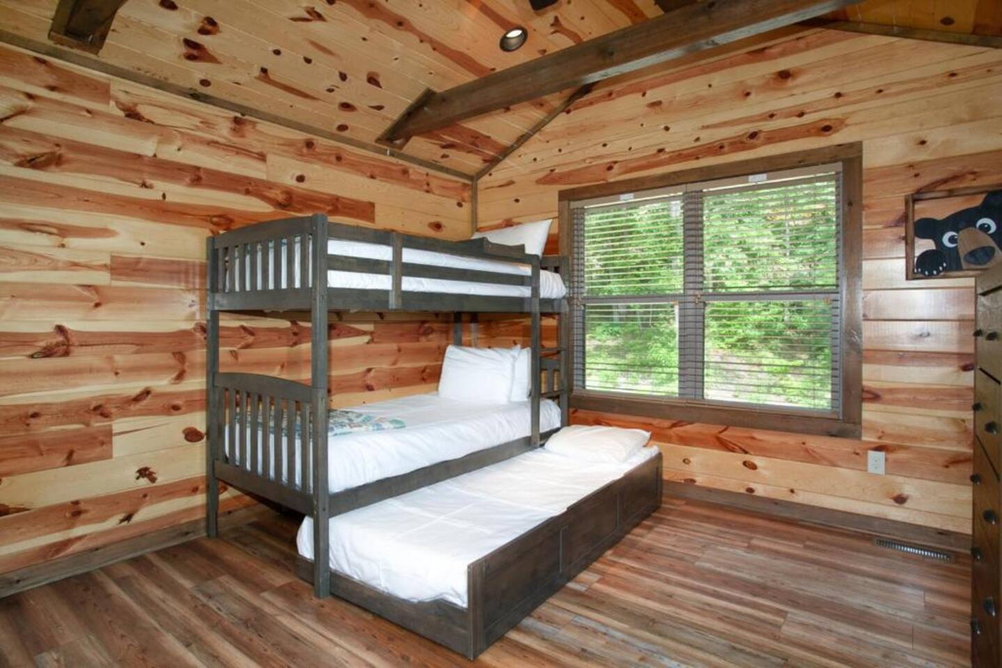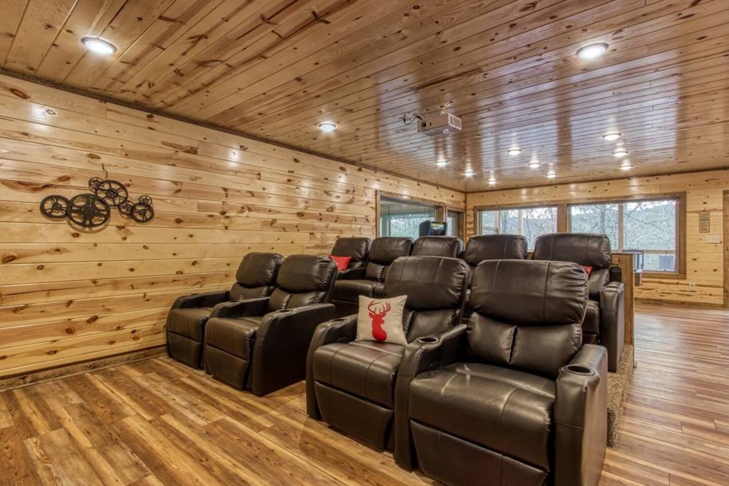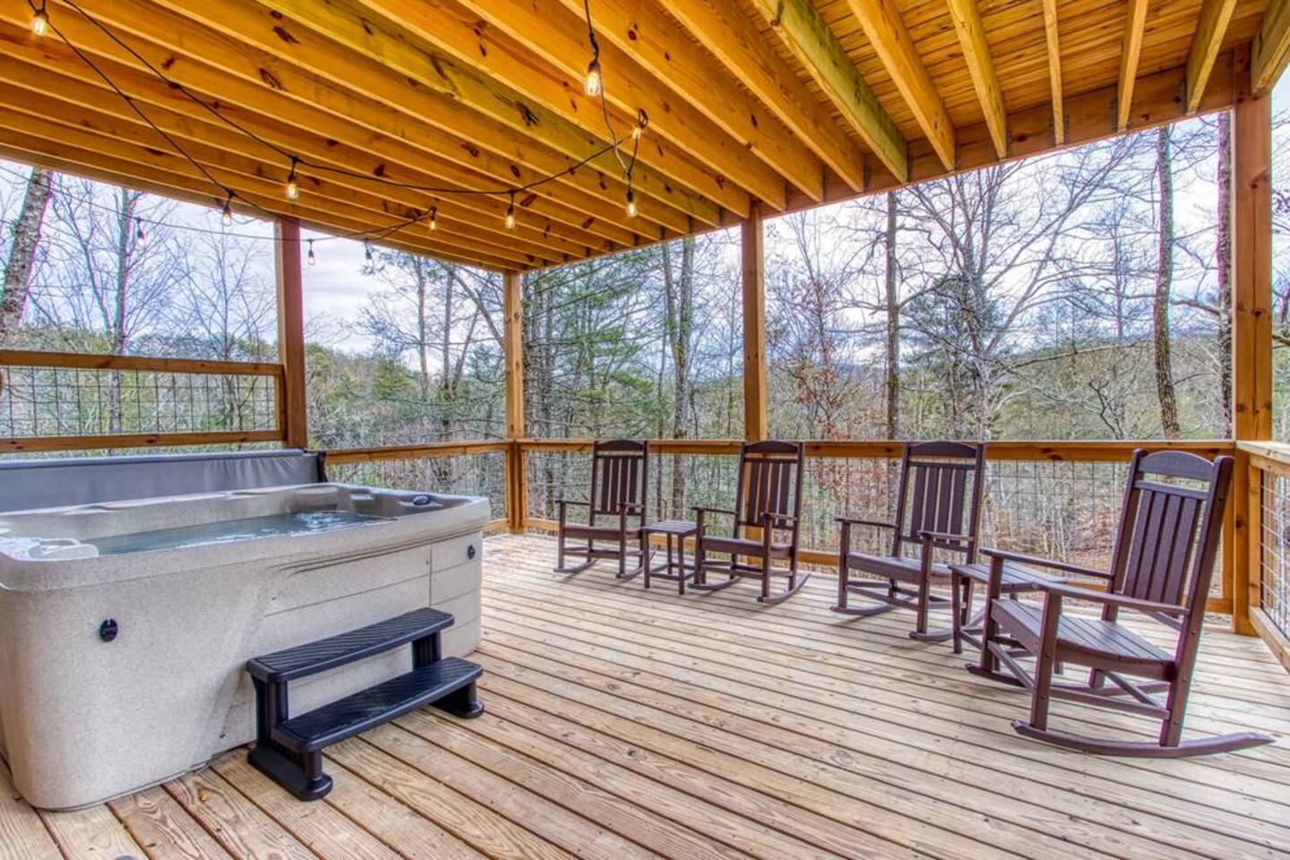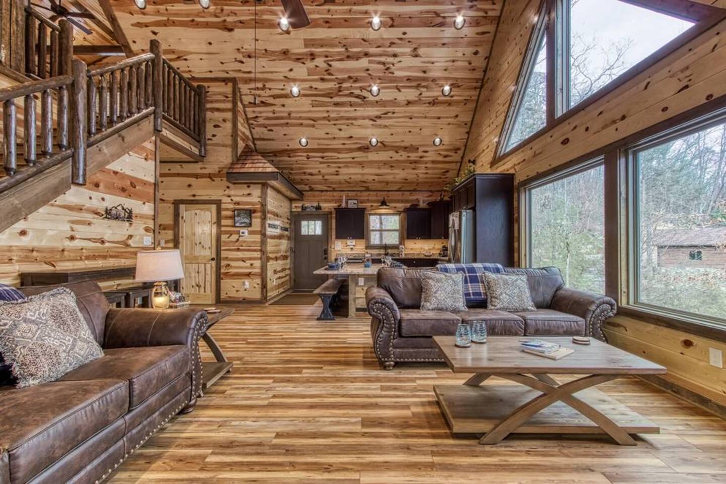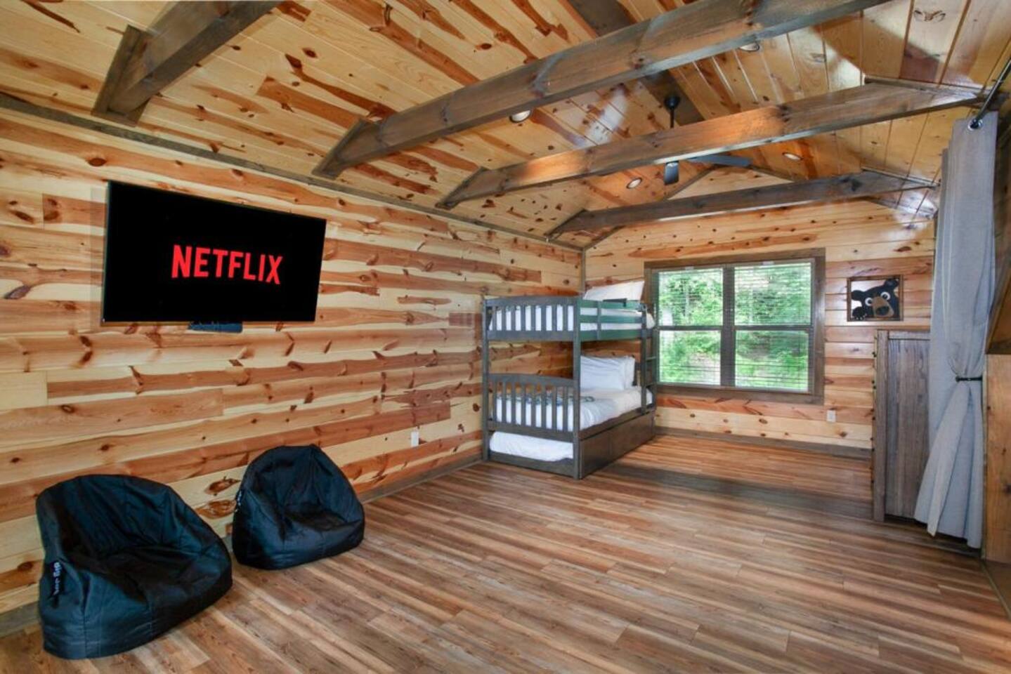 Escape to the Smoky Mountains and experience mountain luxury like never before! Our 5-bedroom cabin is designed for an amazing vacation, bringing nature-inspired elegance to every room. Accommodating up to 13 guests, this spacious retreat is perfect for families, friends, or groups looking for an unforgettable getaway. Why You’ll Love It Here 🏔 Views – Stunning sunsets in the smokies, and wooded scenery. 🏊♂️ Indoor Pool & Hot Tub – Enjoy year-round relaxation, rain or shine. 🎬 Private Theater Room – Movie nights just got better with upgraded 100inch 4K TV, and recliner seats. 🔥 Outdoor Living Area – Cozy up by the stone fireplace and catch the game on the outdoor TV or roast marshmallows down around the fire pit. 🛏 Spacious & Comfortable – 5 beautifully designed bedrooms with premium amenities. ________________________________________ The Space 🛏 Sleeping Arrangements (All with Private Bathrooms!) ✔ Main Floor • Bedroom 1: King Bed | En-suite Bathroom • Bedroom 2: King Bed | En-suite Bathroom ✔ Lower Floor • Bedroom 3: King Bed | En-suite Bathroom • Bedroom 4: King Bed | En-suite Bathroom ✔ Loft Floor • Bedroom 5: Queen Bed, twin bunk beds with a pull-out trundle (30ft loft with privacy curtains) | En-suite Bathroom | Private balcony with rocking chairs 🖤 Extras in Every Room: Ceiling fans, blinds, towels & makeup washcloths, toiletries and hooks for added convenience. ________________________________________ 🏕 Outdoor Oasis •Two Spacious decks with breathtaking views •Wood-Burning Fireplace with TV – Gather around for cozy evenings under the stars •Hot Tub – Unwind while soaking in the mountain air •Dining Area – Enjoy meals outdoors with seating for the whole group •Rocking Chairs – Relax and take in the stunning surroundings • Fire Pit ________________________________________ 🚗 Parking & Accessibility ✔ Paved Driveway – Comfortably fits 4 vehicles ❌ No RVs or Trailers due to driveway limitations ________________________________________ 📶 WiFi & Entertainment ✔ Starlink High-Speed Internet for seamless streaming & remote work ✔ Smart TVs – Log in to Netflix, Hulu, Disney+, and more! ________________________________________ ⏳ Things to Know Before You Book 🔹 Hot Tub Notice: Freshly cleaned & refilled between stays – may take a few hours to heat upon arrival. 🔹Indoor pool is heated to 82-84 degrees year-round. 🔹 Outdoor Fireplace: Wood not provided but available at a convenience store 5 minutes away. 🔹 Wildlife Alert: Bears & other wildlife frequent the area – do NOT leave food or trash outside! 🔹 Well & Septic System: Flush only toilet paper – no wipes, diapers, or feminine products. 🔹 Exterior security camera present. ________________________________________ 📍 Prime Location 🚗 10 Minutes to Pigeon Forge – Dollywood, The Island, dining & attractions 🚗 22 Minutes to Gatlinburg – Great Smoky Mountains National Park, hiking & shopping 🚗 10 Minutes to 2 grocery stores without having to cross major traffic intersections. ________________________________________ 📢 Important House Rules 🚫 No Pets Allowed 🚫 No Parties or Events – Violation may result in removal without refund 🚫 No fireworks or sparklers in or around the ALL WOOD CABIN! ✔ Minimum Rental Age: 25+ ✔ Check-In: 4:00 PM | Check-Out: 10:00 AM ✔ Full Cabin & Driveway Access ________________________________________ 📞 Round-the-Clock Hospitality We’re available via text or call for anything you need during your stay! Your dream mountain retreat is just a booking away—reserve your stay today! ⛰✨