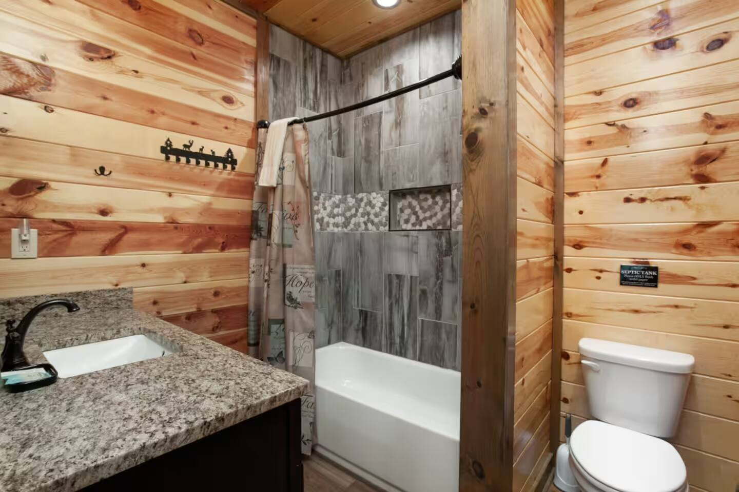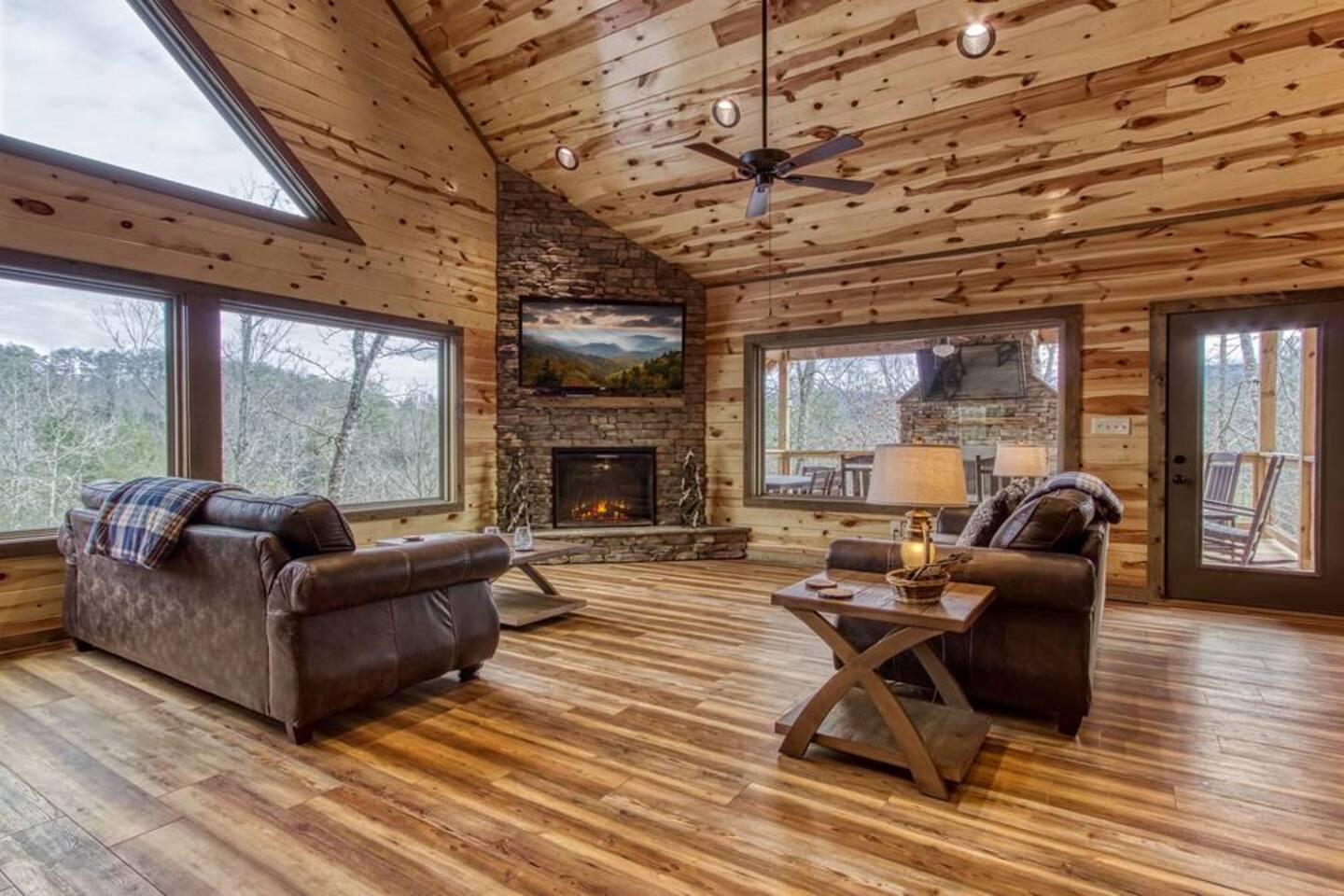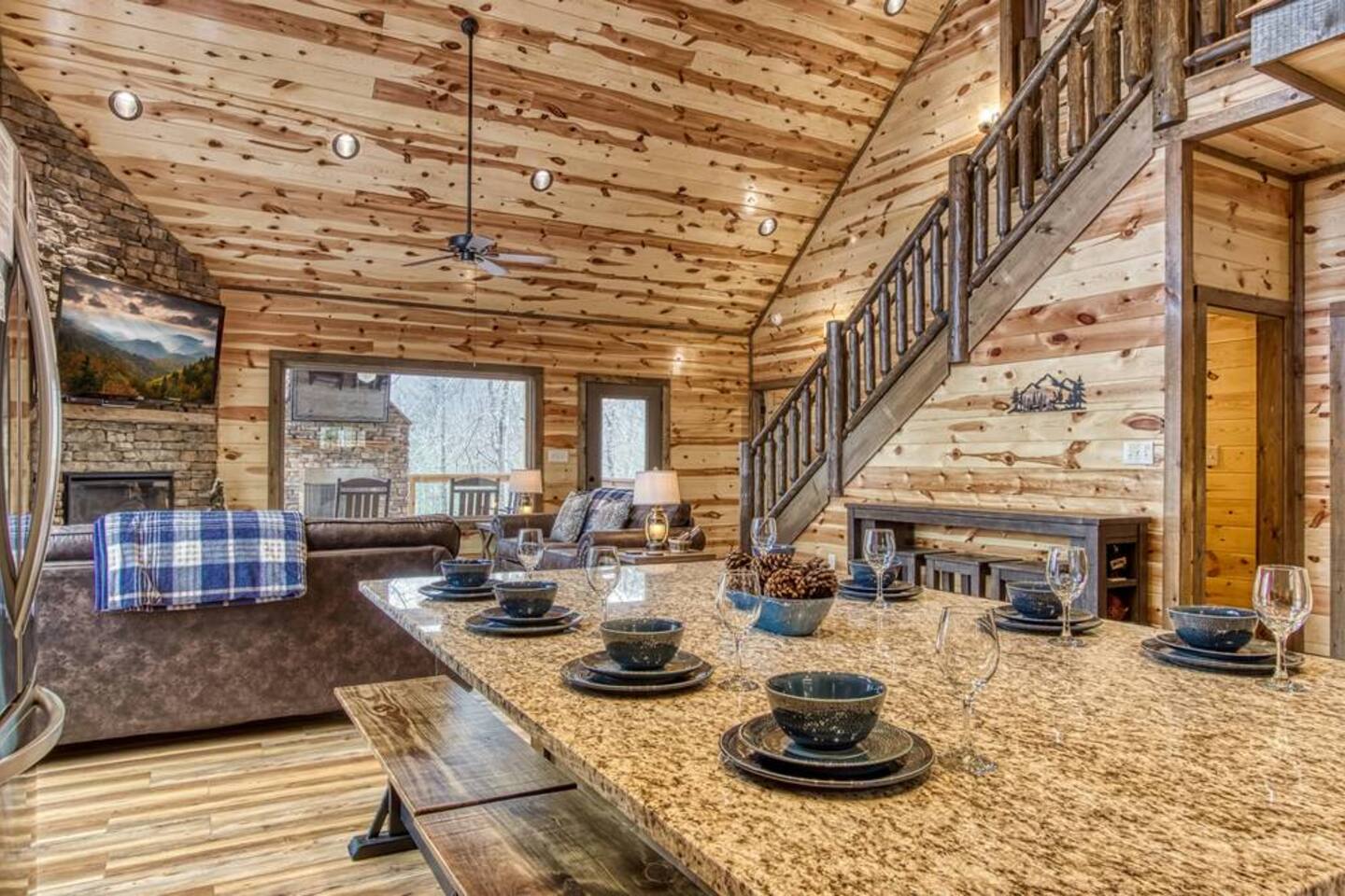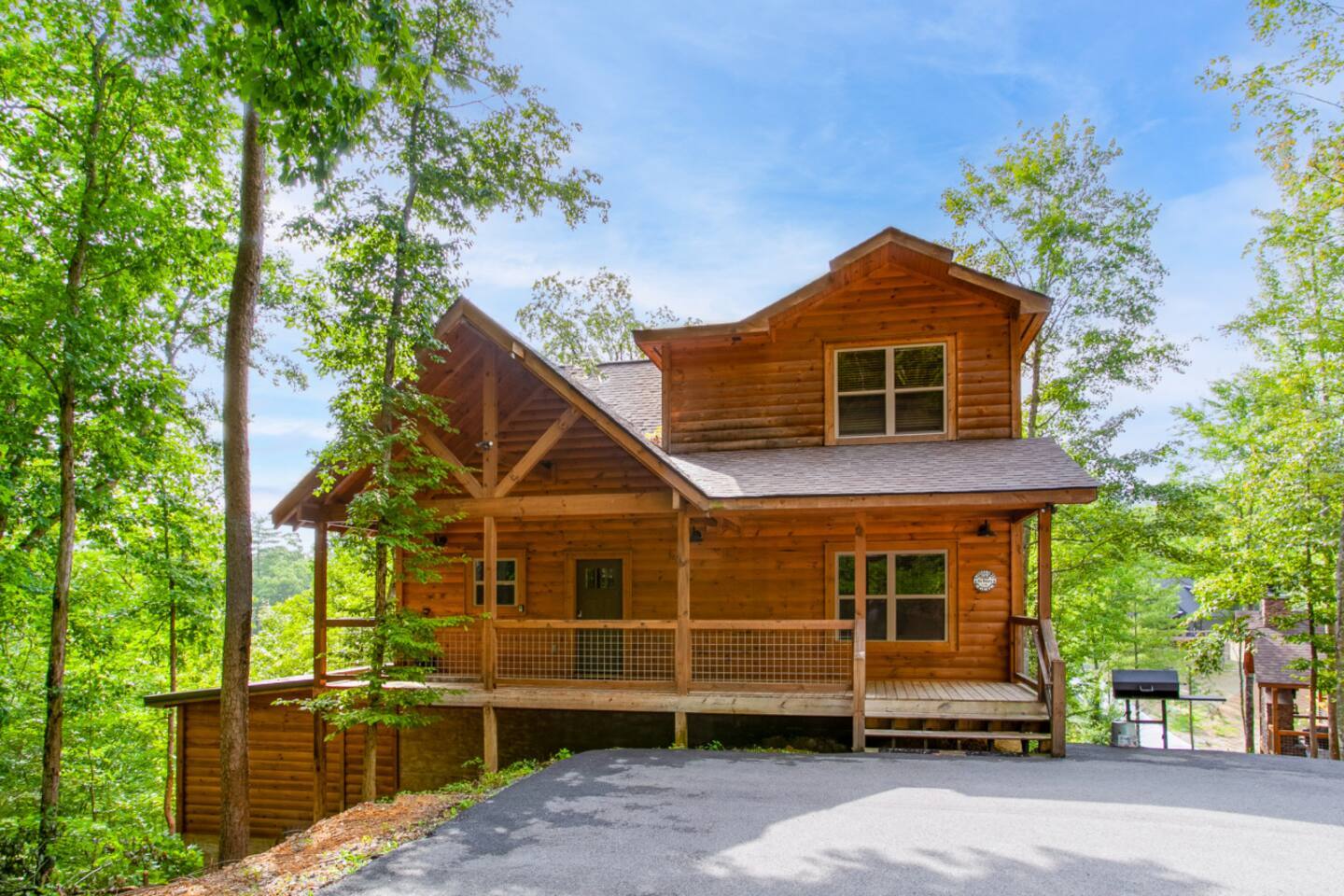 Escape to the Smoky Mountains and experience mountain luxury like never before! Our 5-bedroom cabin is designed for an amazing vacation, bringing nature-inspired elegance to every room. Accommodating up to 13 guests, this spacious retreat is perfect for families, friends, or groups looking for an unforgettable getaway. Why You’ll Love It Here 🏔 Views – Stunning sunsets in the smokies, and wooded scenery. 🏊♂️ Indoor Pool & Hot Tub – Enjoy year-round relaxation, rain or shine. 🎬 Private Theater Room – Movie nights just got better with upgraded 100inch 4K TV, and recliner seats. 🔥 Outdoor Living Area – Cozy up by the stone fireplace and catch the game on the outdoor TV or roast marshmallows down around the fire pit. 🛏 Spacious & Comfortable – 5 beautifully designed bedrooms with premium amenities. ________________________________________ The Space 🛏 Sleeping Arrangements (All with Private Bathrooms!) ✔ Main Floor • Bedroom 1: King Bed | En-suite Bathroom • Bedroom 2: King Bed | En-suite Bathroom ✔ Lower Floor • Bedroom 3: King Bed | En-suite Bathroom • Bedroom 4: King Bed | En-suite Bathroom ✔ Loft Floor • Bedroom 5: Queen Bed, twin bunk beds with a pull-out trundle (30ft loft with privacy curtains) | En-suite Bathroom | Private balcony with rocking chairs 🖤 Extras in Every Room: Ceiling fans, blinds, towels & makeup washcloths, toiletries and hooks for added convenience. ________________________________________ 🏕 Outdoor Oasis •Two Spacious decks with breathtaking views •Wood-Burning Fireplace with TV – Gather around for cozy evenings under the stars •Hot Tub – Unwind while soaking in the mountain air •Dining Area – Enjoy meals outdoors with seating for the whole group •Rocking Chairs – Relax and take in the stunning surroundings • Fire Pit ________________________________________ 🚗 Parking & Accessibility ✔ Paved Driveway – Comfortably fits 4 vehicles ❌ No RVs or Trailers due to driveway limitations ________________________________________ 📶 WiFi & Entertainment ✔ Starlink High-Speed Internet for seamless streaming & remote work ✔ Smart TVs – Log in to Netflix, Hulu, Disney+, and more! ________________________________________ ⏳ Things to Know Before You Book 🔹 Hot Tub Notice: Freshly cleaned & refilled between stays – may take a few hours to heat upon arrival. 🔹Indoor pool is heated to 82-84 degrees year-round. 🔹 Outdoor Fireplace: Wood not provided but available at a convenience store 5 minutes away. 🔹 Wildlife Alert: Bears & other wildlife frequent the area – do NOT leave food or trash outside! 🔹 Well & Septic System: Flush only toilet paper – no wipes, diapers, or feminine products. 🔹 Exterior security camera present. ________________________________________ 📍 Prime Location 🚗 10 Minutes to Pigeon Forge – Dollywood, The Island, dining & attractions 🚗 22 Minutes to Gatlinburg – Great Smoky Mountains National Park, hiking & shopping 🚗 10 Minutes to 2 grocery stores without having to cross major traffic intersections. ________________________________________ 📢 Important House Rules 🚫 No Pets Allowed 🚫 No Parties or Events – Violation may result in removal without refund 🚫 No fireworks or sparklers in or around the ALL WOOD CABIN! ✔ Minimum Rental Age: 25+ ✔ Check-In: 4:00 PM | Check-Out: 10:00 AM ✔ Full Cabin & Driveway Access ________________________________________ 📞 Round-the-Clock Hospitality We’re available via text or call for anything you need during your stay! Your dream mountain retreat is just a booking away—reserve your stay today! ⛰✨