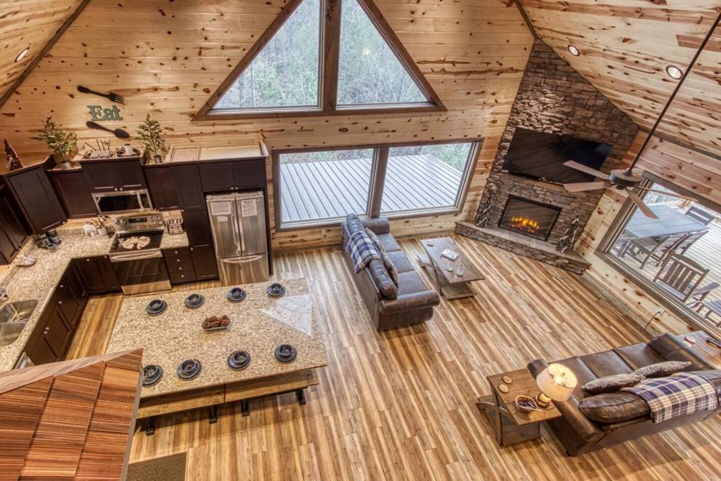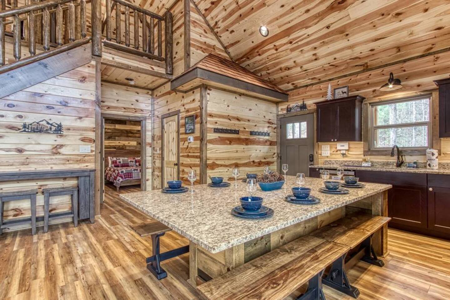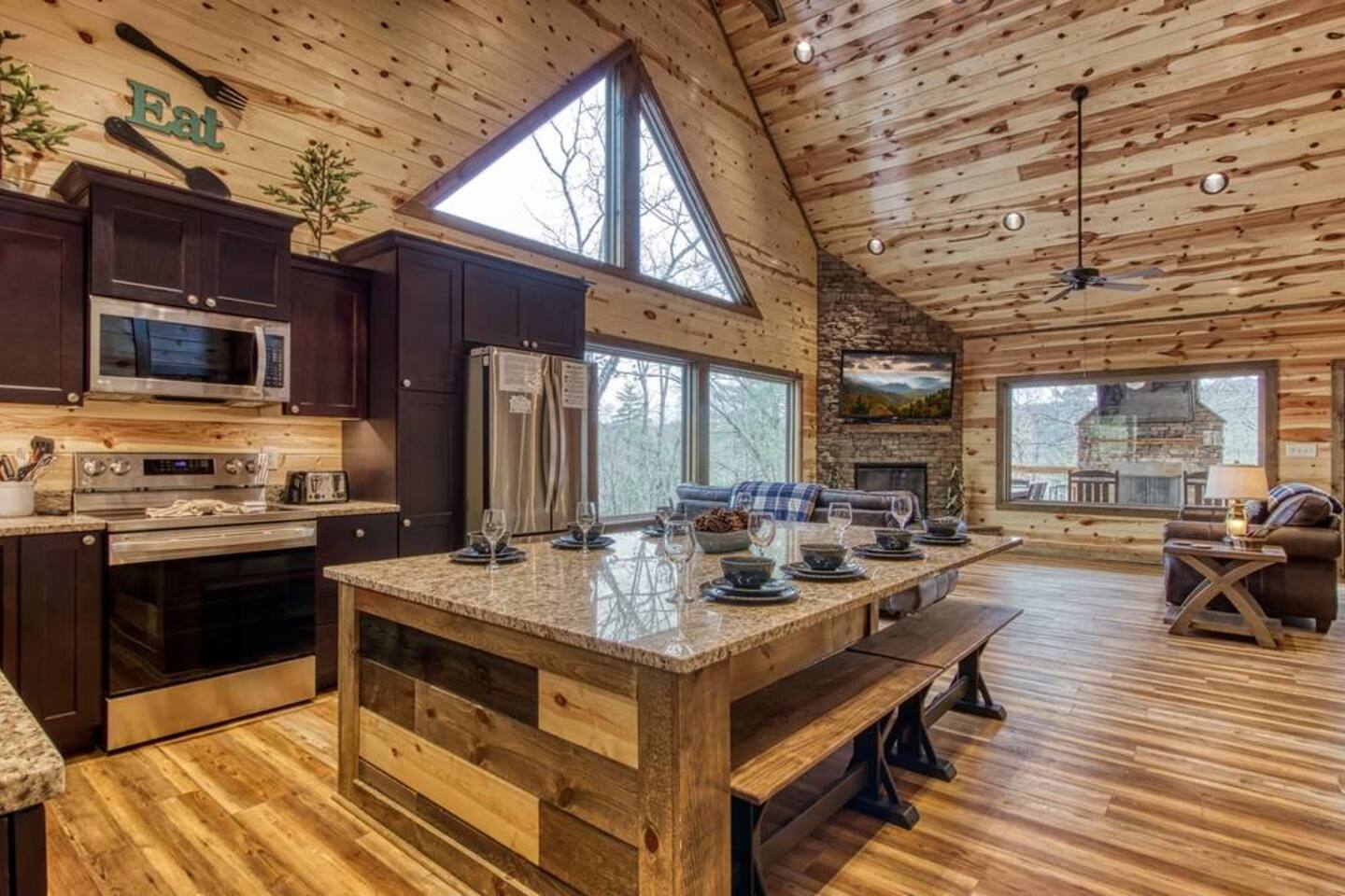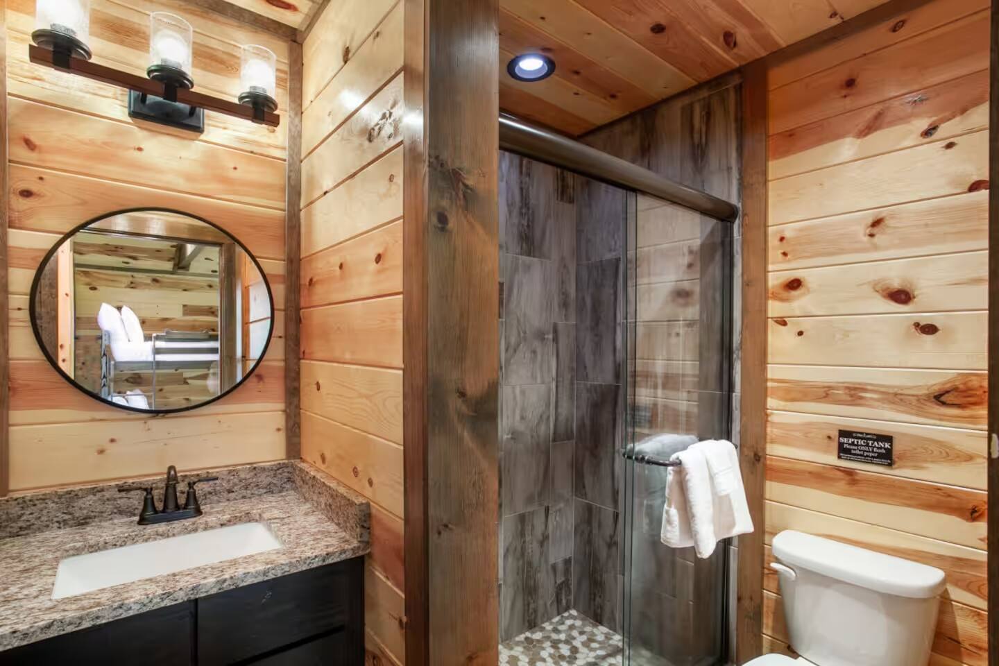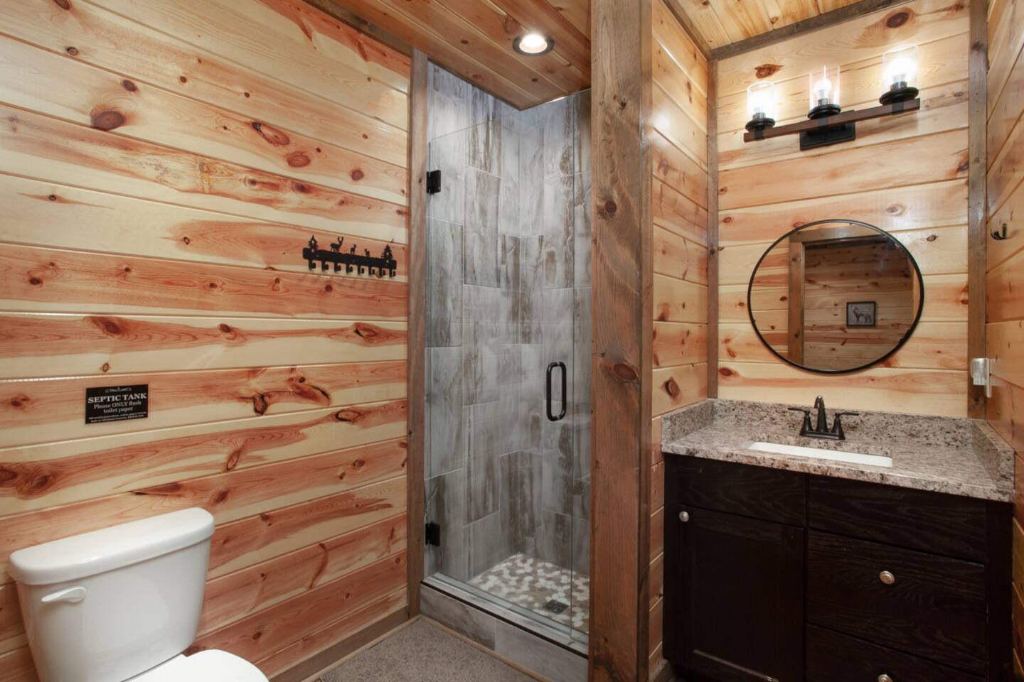Escape to the Smoky Mountains and experience mountain luxury like never before! Our 5-bedroom cabin is designed for an amazing vacation, bringing nature-inspired elegance to every room. Accommodating up to 13 guests, this spacious retreat is perfect for families, friends, or groups looking for an unforgettable getaway. Why You’ll Love It Here 🏔 Views – Stunning sunsets in the smokies, and wooded scenery. 🏊♂️ Indoor Pool & Hot Tub – Enjoy year-round relaxation, rain or shine. 🎬 Private Theater Room – Movie nights just got better with upgraded 100inch 4K TV, and recliner seats. 🔥 Outdoor Living Area – Cozy up by the stone fireplace and catch the game on the outdoor TV or roast marshmallows down around the fire pit. 🛏 Spacious & Comfortable – 5 beautifully designed bedrooms with premium amenities. ________________________________________ The Space 🛏 Sleeping Arrangements (All with Private Bathrooms!) ✔ Main Floor • Bedroom 1: King Bed | En-suite Bathroom • Bedroom 2: King Bed | En-suite Bathroom ✔ Lower Floor • Bedroom 3: King Bed | En-suite Bathroom • Bedroom 4: King Bed | En-suite Bathroom ✔ Loft Floor • Bedroom 5: Queen Bed, twin bunk beds with a pull-out trundle (30ft loft with privacy curtains) | En-suite Bathroom | Private balcony with rocking chairs 🖤 Extras in Every Room: Ceiling fans, blinds, towels & makeup washcloths, toiletries and hooks for added convenience. ________________________________________ 🏕 Outdoor Oasis •Two Spacious decks with breathtaking views •Wood-Burning Fireplace with TV – Gather around for cozy evenings under the stars •Hot Tub – Unwind while soaking in the mountain air •Dining Area – Enjoy meals outdoors with seating for the whole group •Rocking Chairs – Relax and take in the stunning surroundings • Fire Pit ________________________________________ 🚗 Parking & Accessibility ✔ Paved Driveway – Comfortably fits 4 vehicles ❌ No RVs or Trailers due to driveway limitations ________________________________________ 📶 WiFi & Entertainment ✔ Starlink High-Speed Internet for seamless streaming & remote work ✔ Smart TVs – Log in to Netflix, Hulu, Disney+, and more! ________________________________________ ⏳ Things to Know Before You Book 🔹 Hot Tub Notice: Freshly cleaned & refilled between stays – may take a few hours to heat upon arrival. 🔹Indoor pool is heated to 82-84 degrees year-round. 🔹 Outdoor Fireplace: Wood not provided but available at a convenience store 5 minutes away. 🔹 Wildlife Alert: Bears & other wildlife frequent the area – do NOT leave food or trash outside! 🔹 Well & Septic System: Flush only toilet paper – no wipes, diapers, or feminine products. 🔹 Exterior security camera present. ________________________________________ 📍 Prime Location 🚗 10 Minutes to Pigeon Forge – Dollywood, The Island, dining & attractions 🚗 22 Minutes to Gatlinburg – Great Smoky Mountains National Park, hiking & shopping 🚗 10 Minutes to 2 grocery stores without having to cross major traffic intersections. ________________________________________ 📢 Important House Rules 🚫 No Pets Allowed 🚫 No Parties or Events – Violation may result in removal without refund 🚫 No fireworks or sparklers in or around the ALL WOOD CABIN! ✔ Minimum Rental Age: 25+ ✔ Check-In: 4:00 PM | Check-Out: 10:00 AM ✔ Full Cabin & Driveway Access ________________________________________ 📞 Round-the-Clock Hospitality We’re available via text or call for anything you need during your stay! Your dream mountain retreat is just a booking away—reserve your stay today! ⛰✨